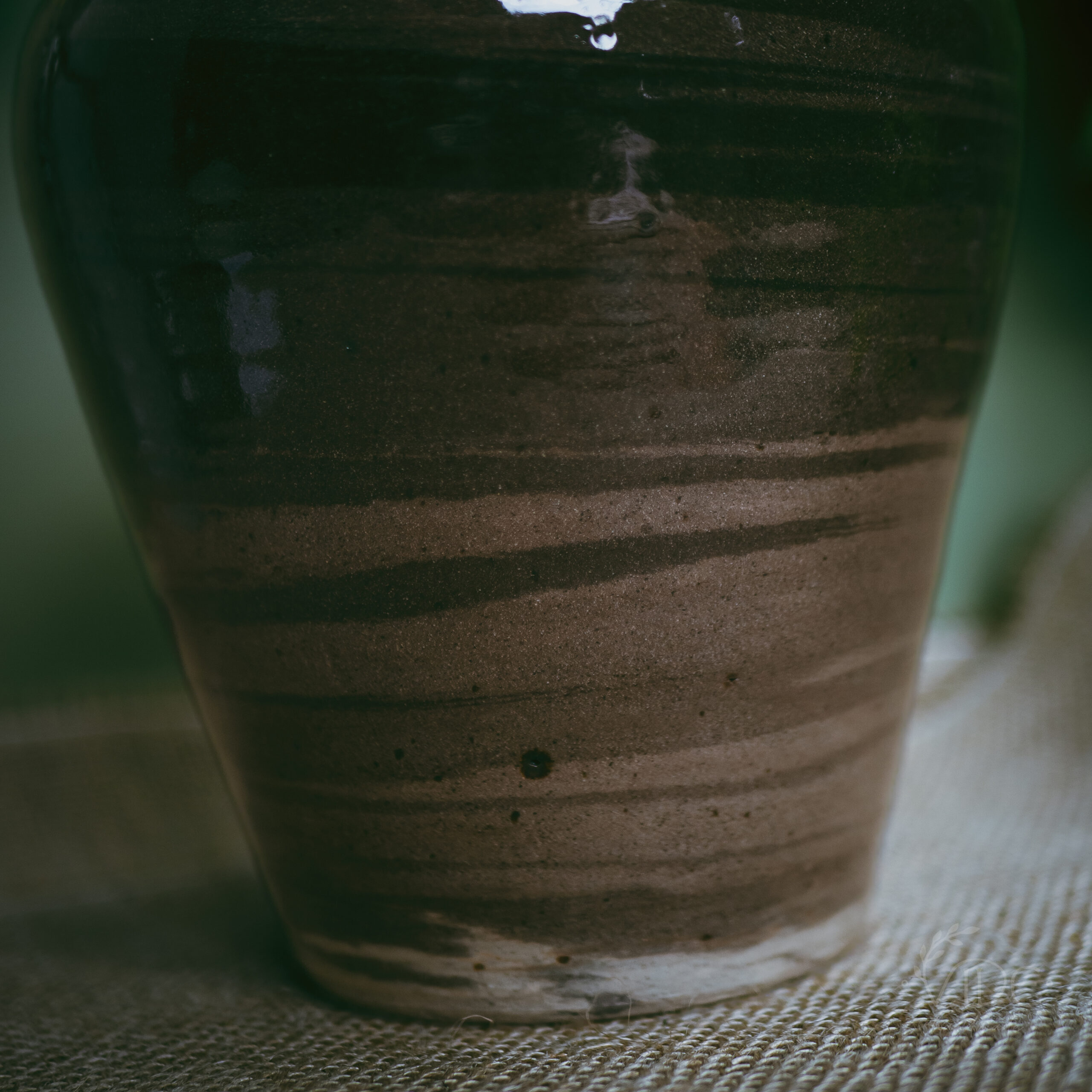 Wazon został wykonany z mieszanki ciemnych glin – efekt spiralki powstał podczas toczenia na kole i jest niepowtarzalny.
